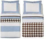4-piece set includes reversible toddler quilt, fitted sheet, flat sheet, and pillow case